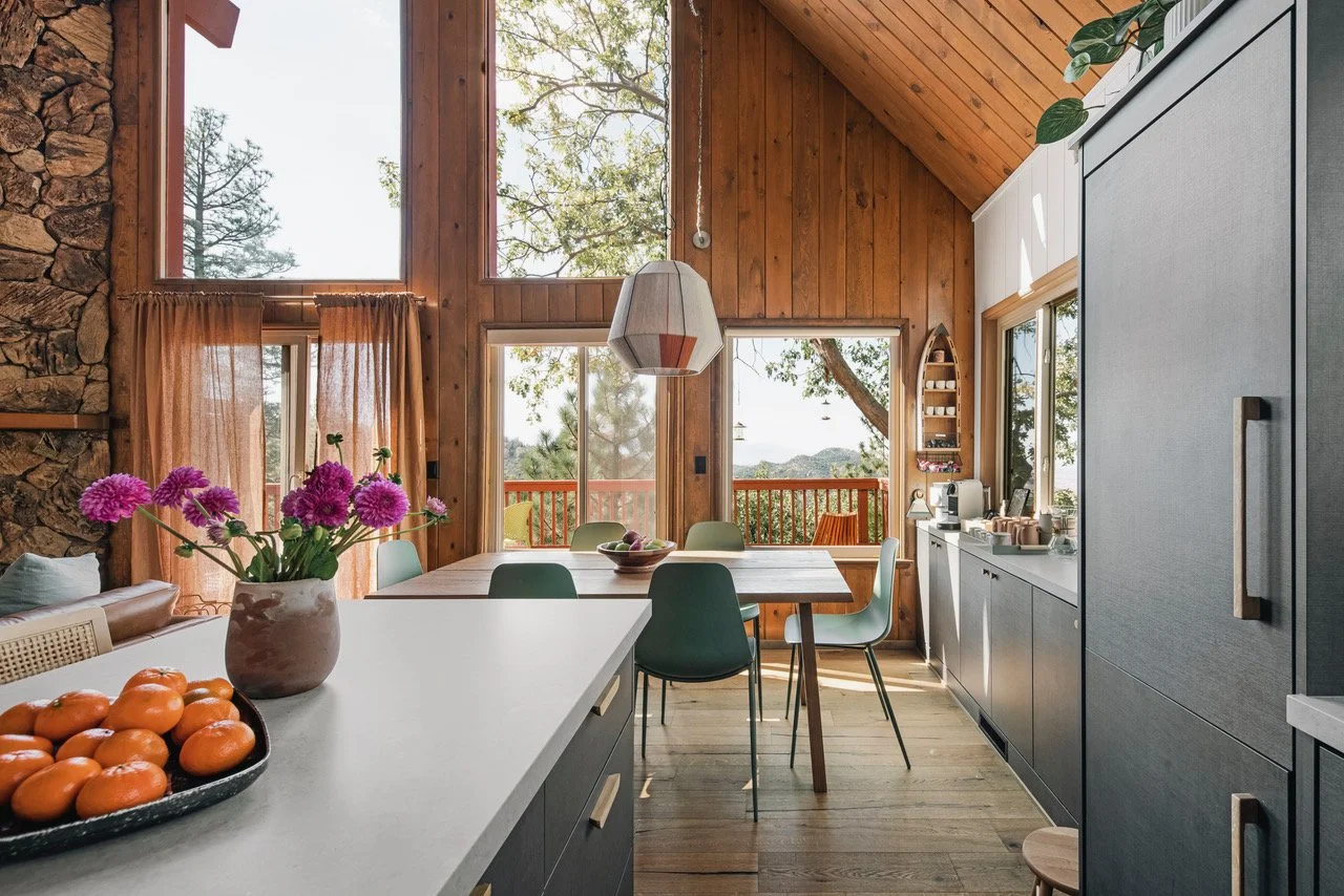 This Lake Arrowhead cabin received a full transformation, with thoughtful design and clever use of space throughout. The entire cabin was remodeled, including custom-designed stair railings that add a unique touch. I designed and built two charming bed nooks in the A-frame loft, turning unused space into cozy sleeping areas. What was once a walk-in closet was transformed into a playful kids' area, bringing new life and fun to the space. The entire cabin was refreshed with fresh paint and wallpaper, giving it a vibrant, modern vibe that both guests and owners absolutely love. It's the perfect blend of functionality and style, making it a truly special getaway.